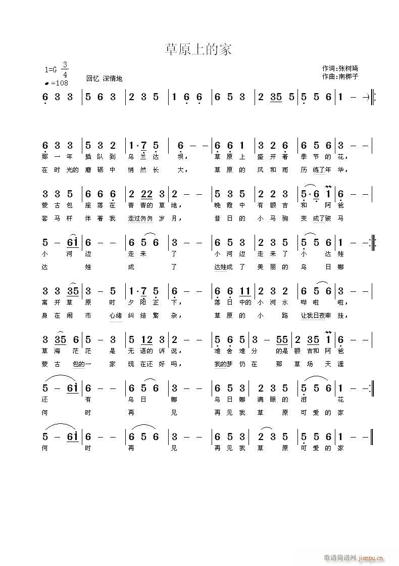 [七字歌谱]我在草原有个家 作词:纳钦作曲:斯琴朝克图