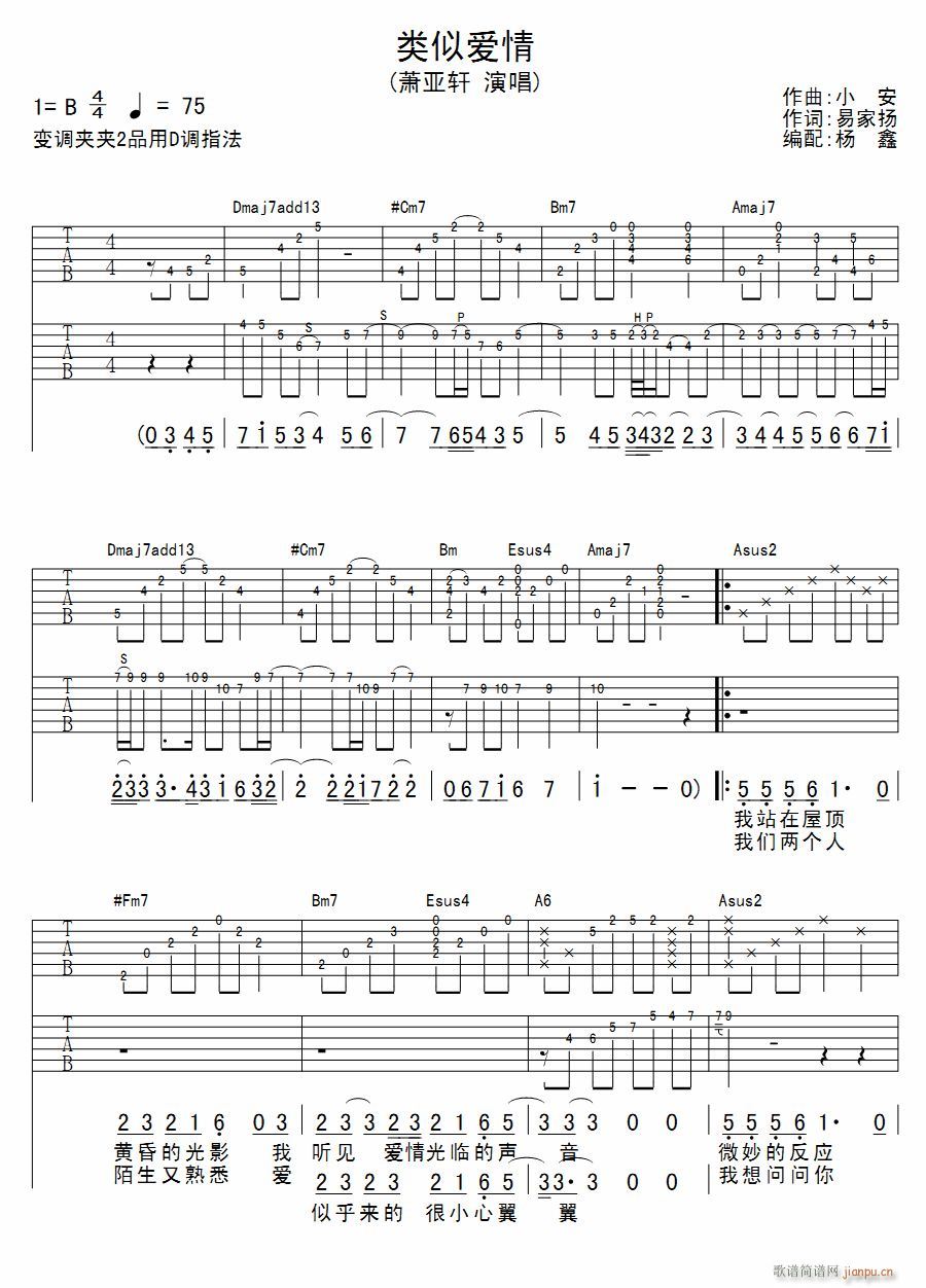 [吉他谱]类似爱情(吉他弹唱) 萧亚轩