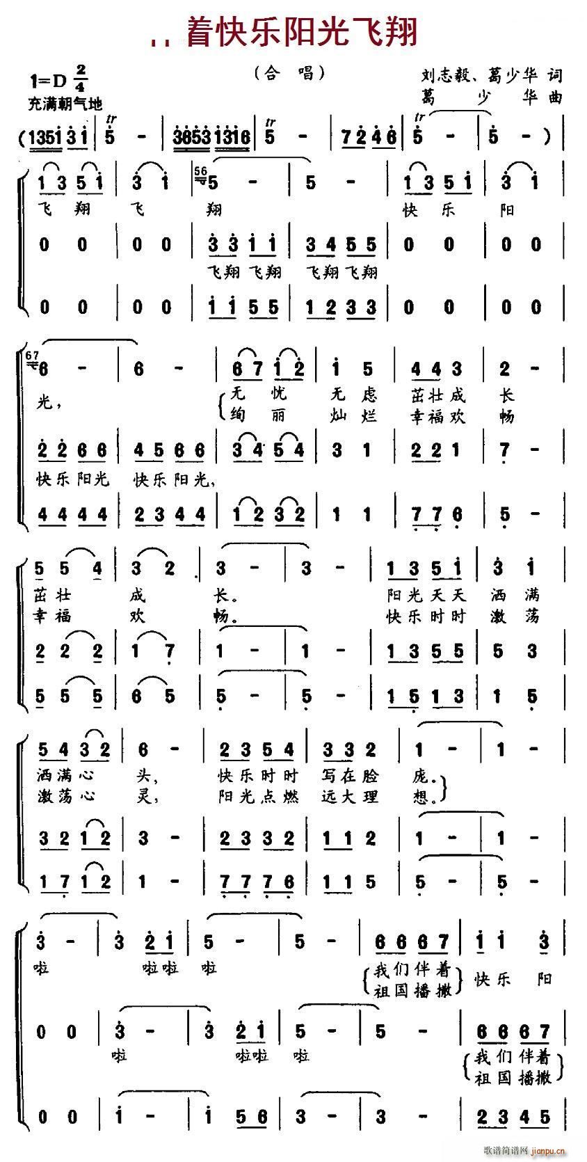 [八字歌谱]佯着快乐阳光飞翔(童声合唱)