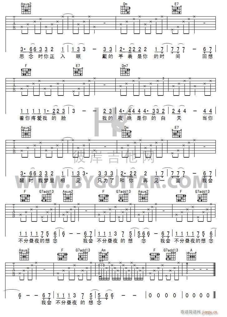 [吉他谱]最想念你-认证谱吉他谱( 六线谱)- 未知