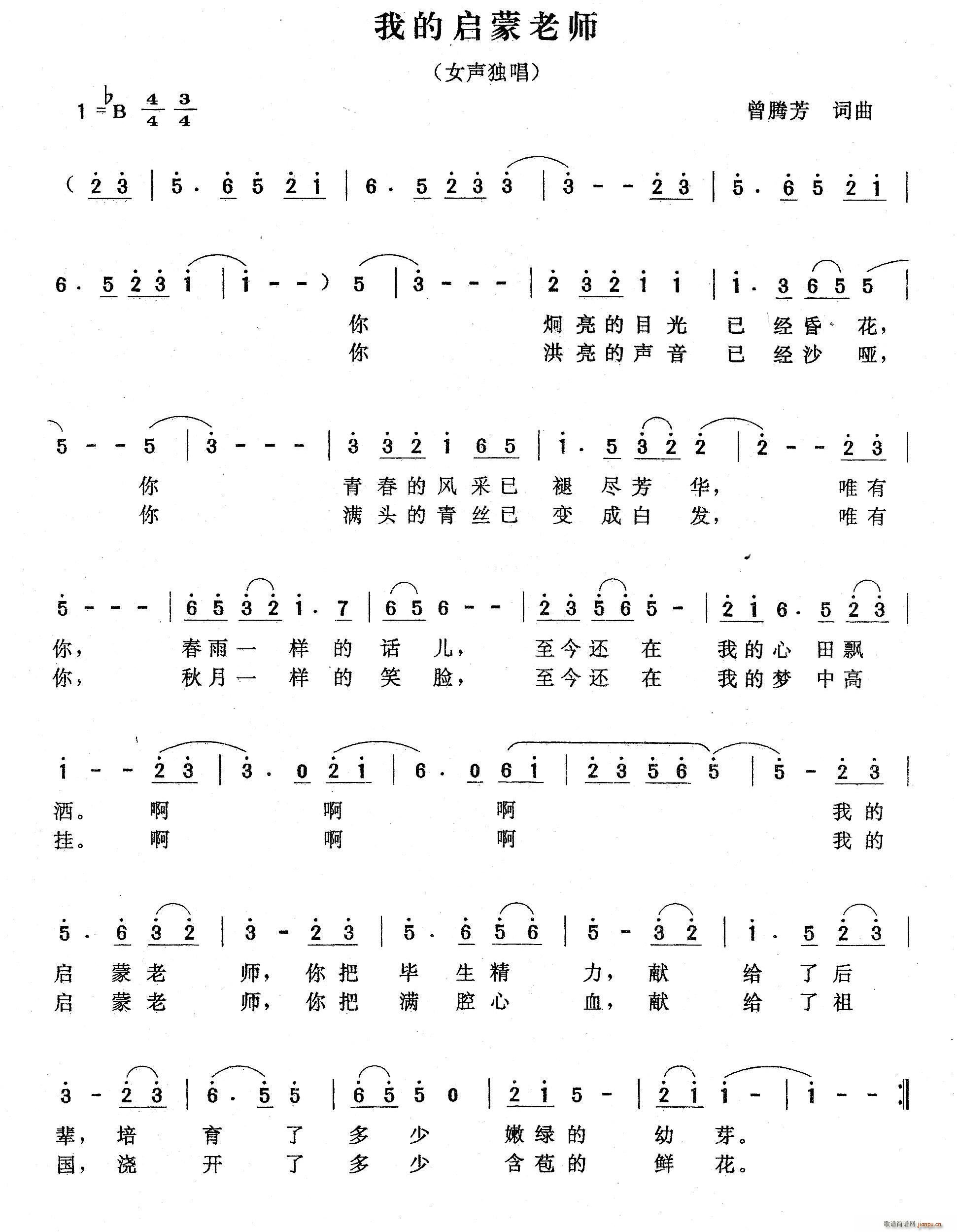 [六字歌谱]我的启蒙老师(曾腾芳 词曲)