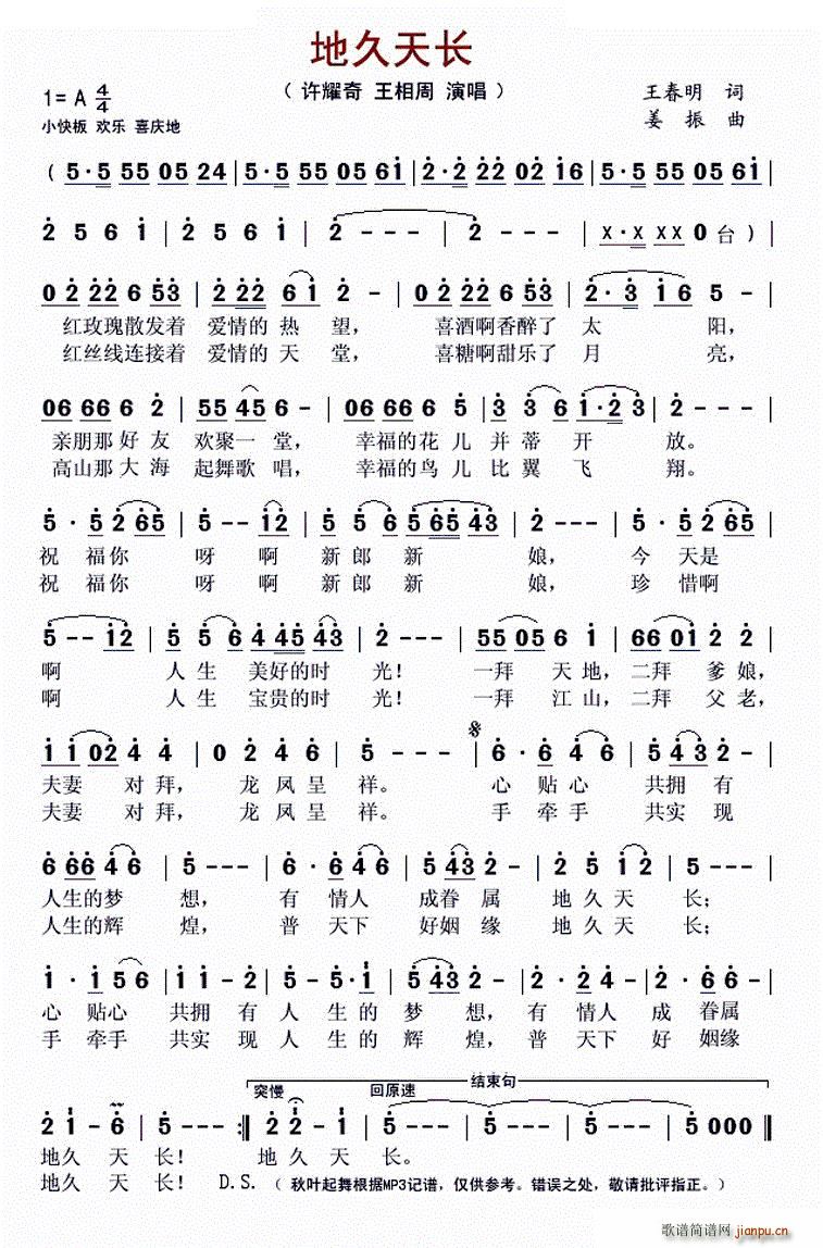 [十字及以上]地久天长( 、 ) — 制谱版 许耀奇 王相周