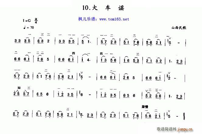 [二胡谱]大车谣 —山西民歌(初级二胡)