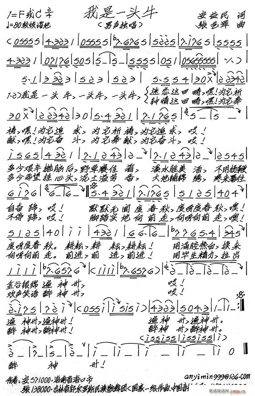 [五字歌谱]我是一头牛