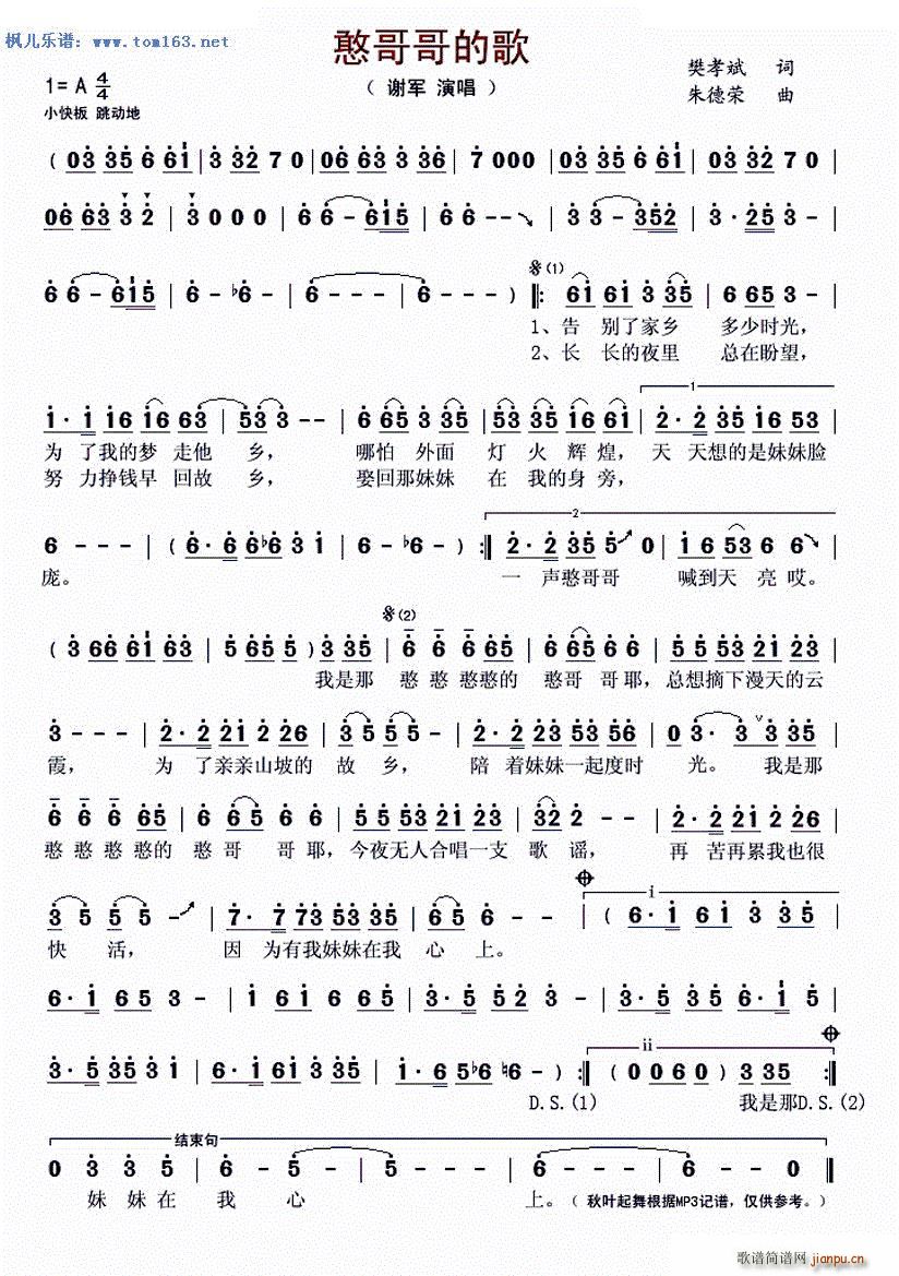 [五字歌谱]憨哥哥的歌 谢军