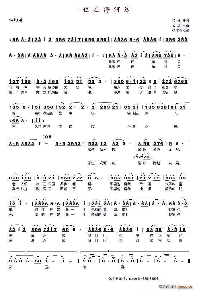 [十字及以上]我家住在海河边-张学新记谱 李青