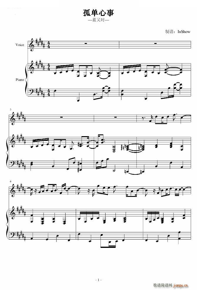 [四字歌谱]孤单心事 蓝又时