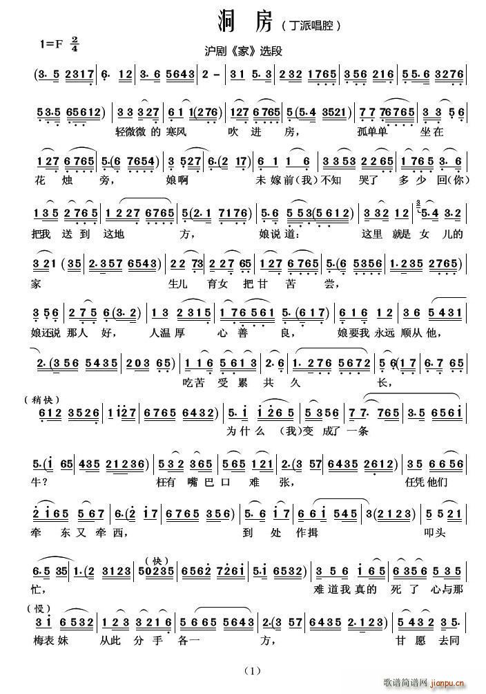 [二字歌谱]洞房 【对唱】赵丽蓉、宋长文