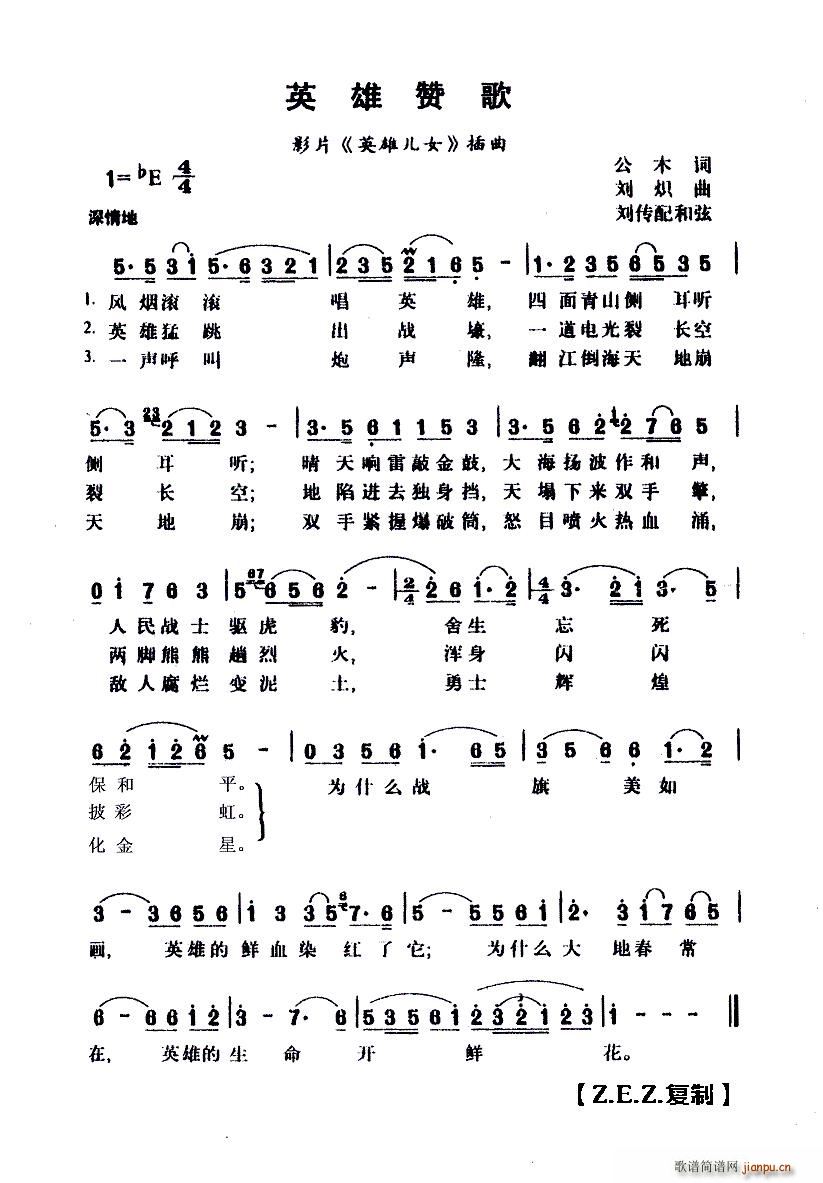 [四字歌谱]英雄赞歌(《英雄儿女》插曲) 未知
