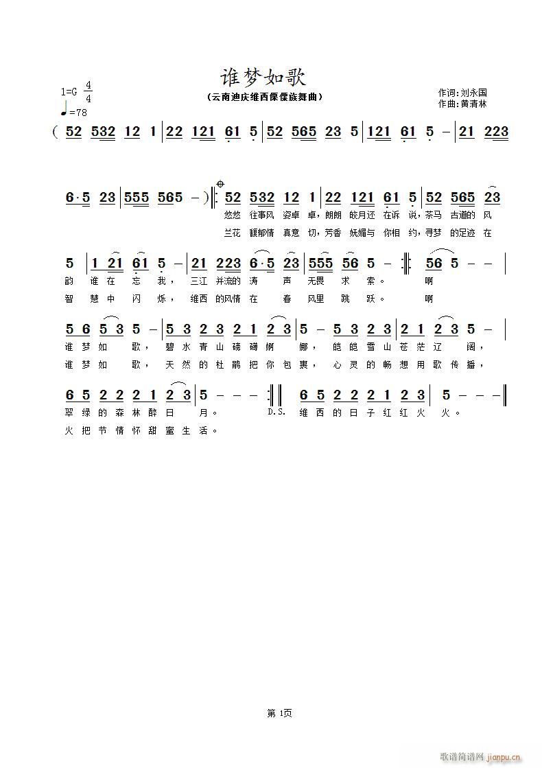 [四字歌谱]《谁梦如歌》刘永国词 曲