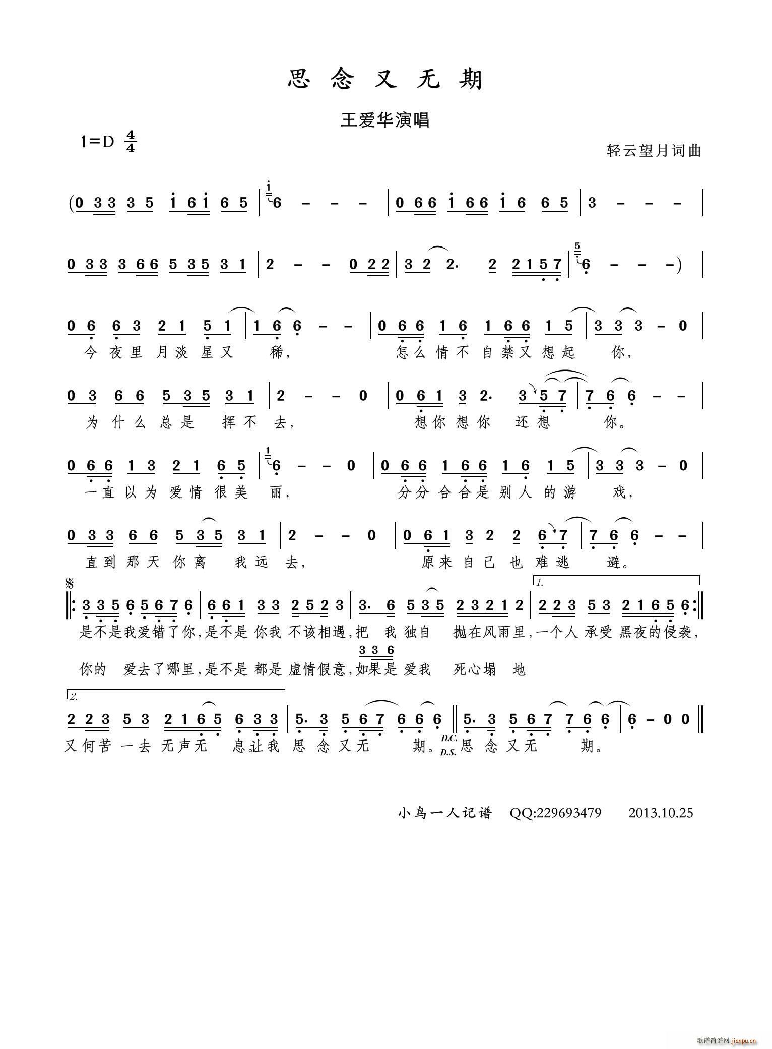 [五字歌谱]思念又无期(轻云望月词曲) 王爱华