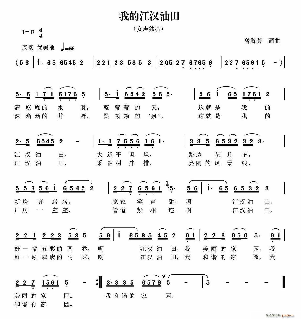 [六字歌谱]我的江汉油田(曾腾芳词曲)