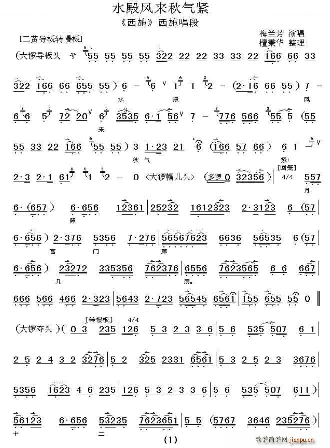 [京剧曲谱]水殿风来秋气紧( 唱段、伴奏谱) 京剧唱谱 西施