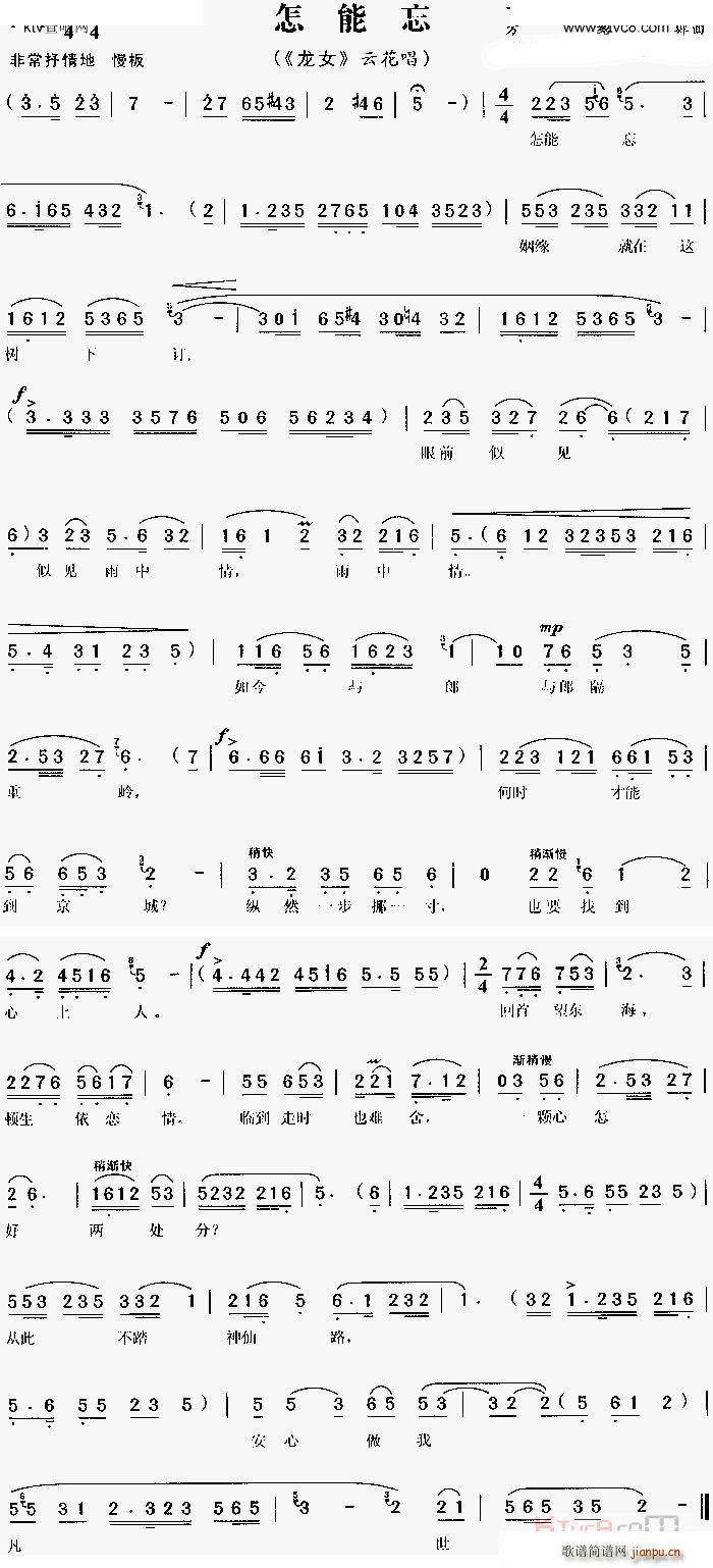 [三字歌谱]怎能忘《龙女》[戏曲曲谱] 未知