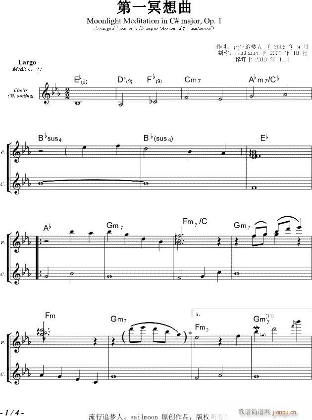[钢琴谱]第一冥想曲(2005)