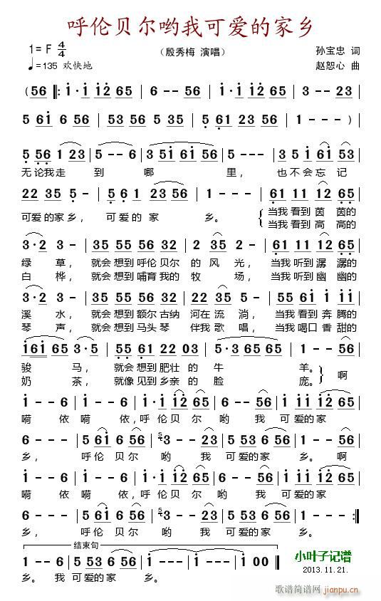[八字歌谱]呼伦贝尔我的家乡 思雨