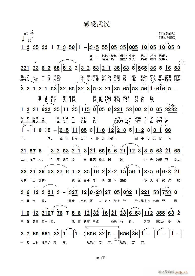 [五字歌谱]我要去武汉 余尔词曲哼唱 许宝仁记谱