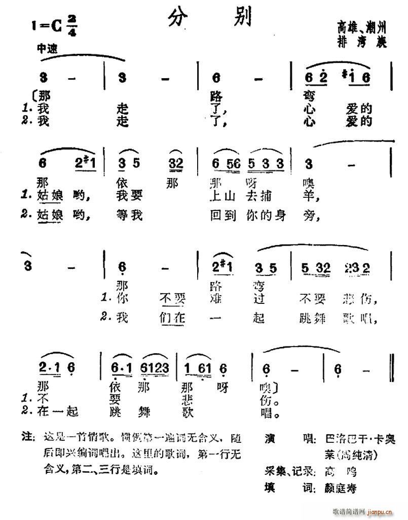 > 分别(台湾排湾族民歌)