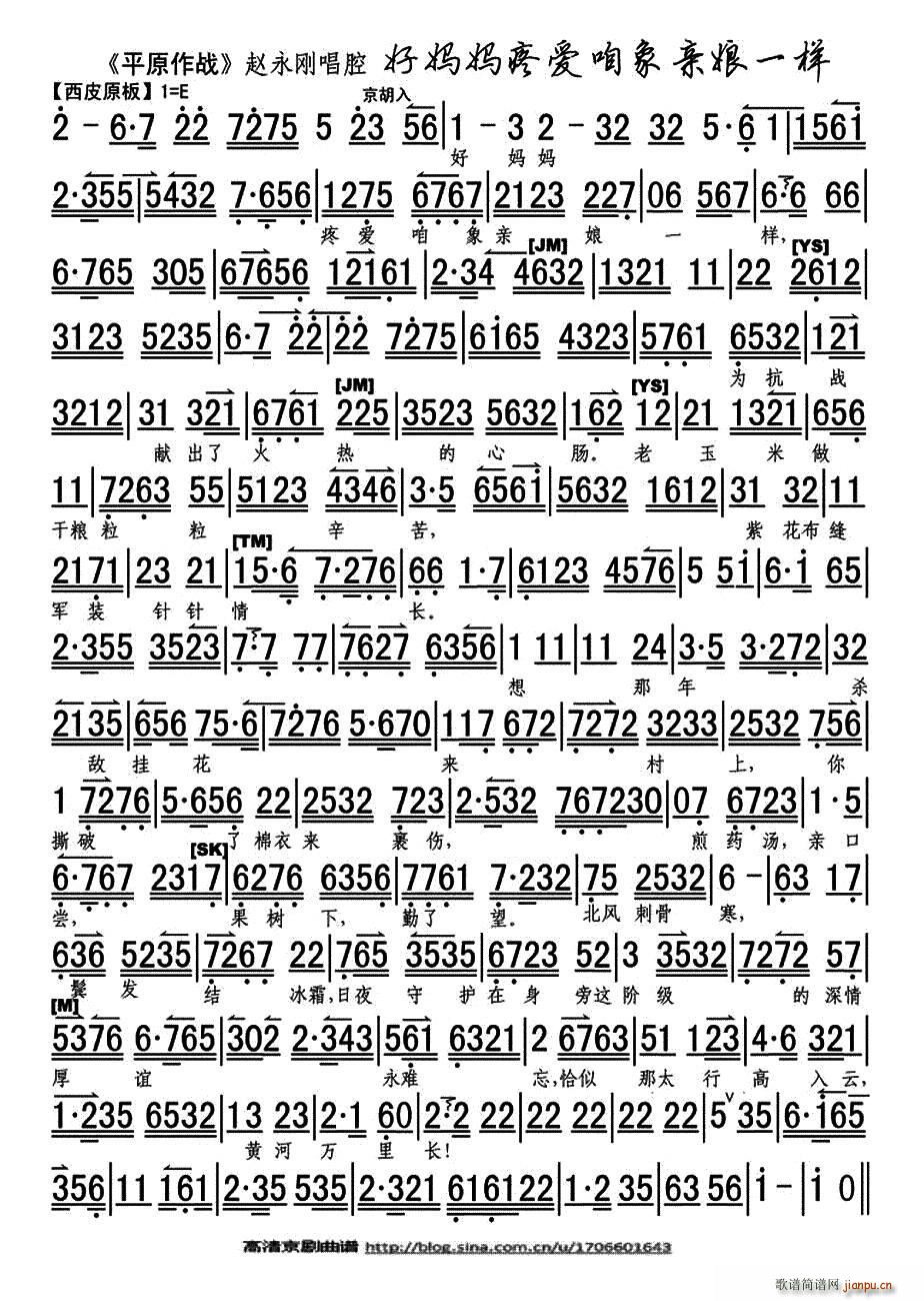 [京剧曲谱]好妈妈疼爱咱脸象亲娘一样(《平原作战》 唱段、琴谱) 赵永刚