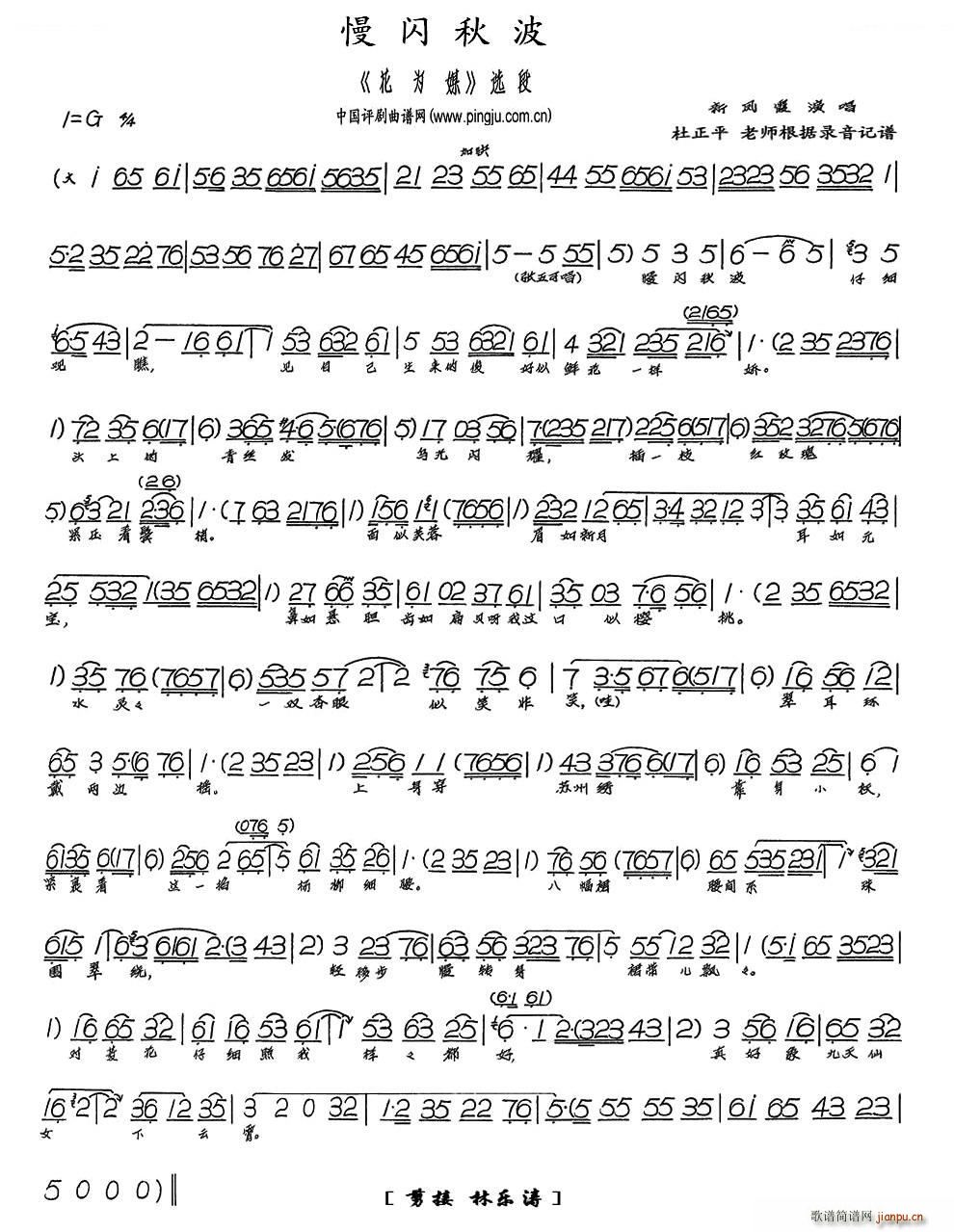 [京剧曲谱]慢闪秋波(《花为媒》选段) 京剧唱谱 新凤霞