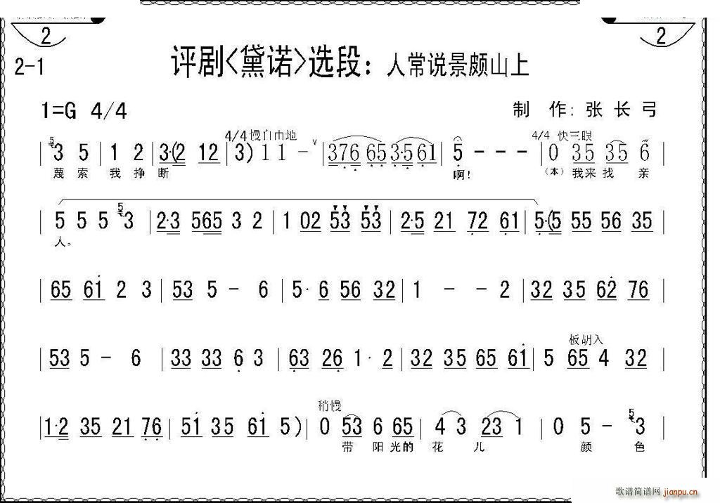 > 人常说景颇山上(《戴诺》选段) 评剧唱谱