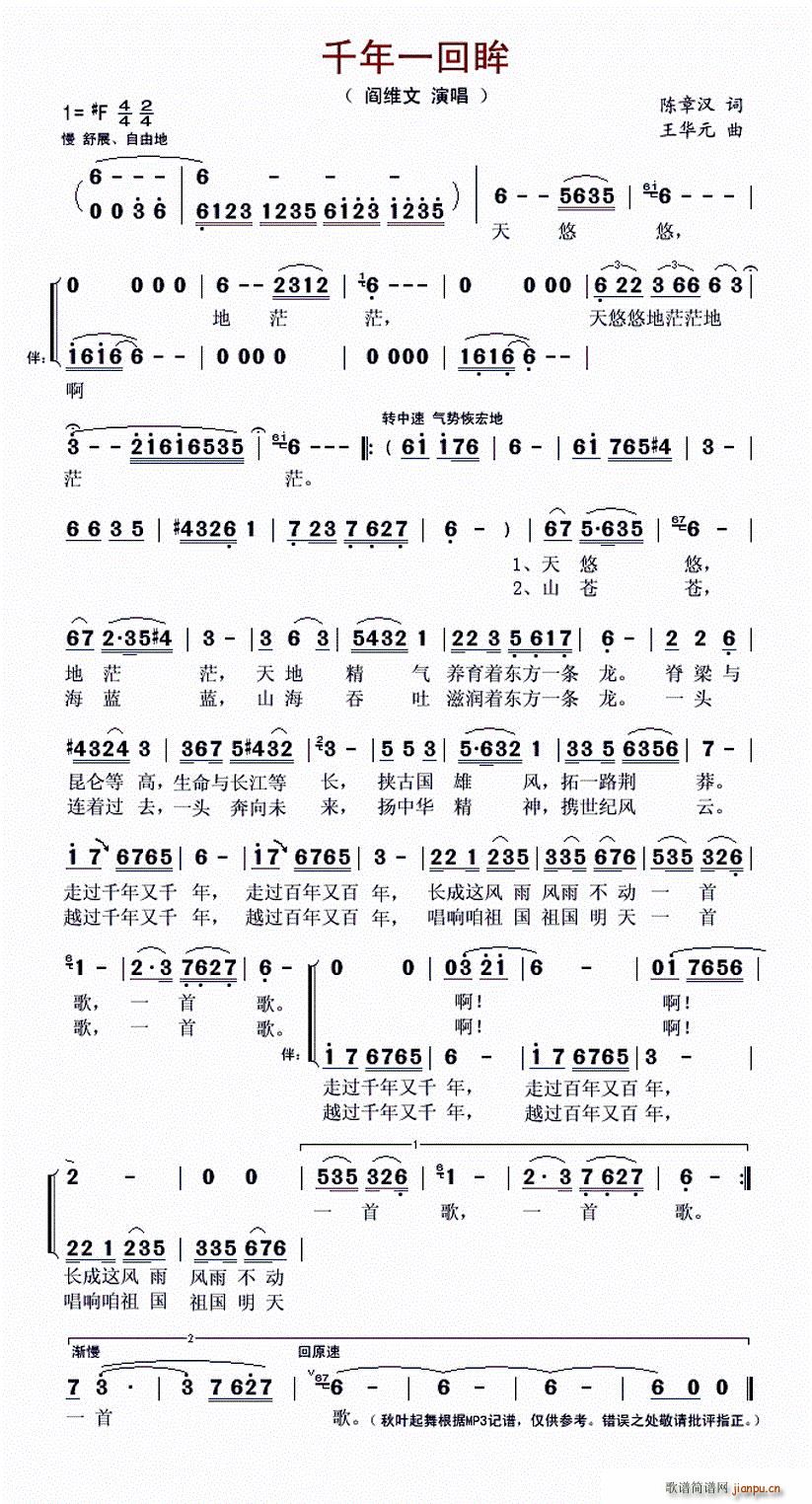 [四字歌谱]《回眸之间》张志鹏词 老孟老土曲 (明天特别奉献)