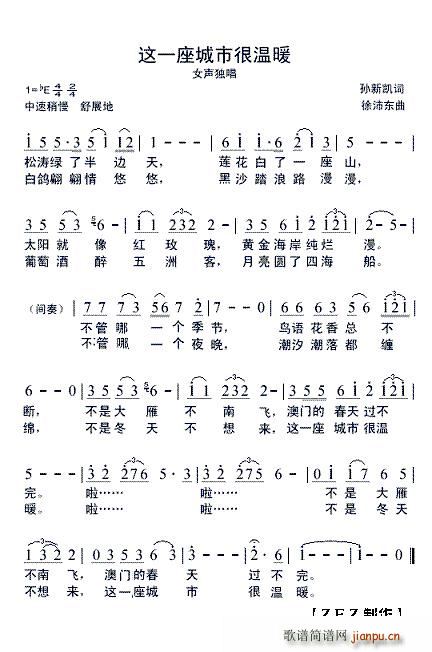 [十字及以上]有座可爱的城市在北方[合唱曲谱] 未知