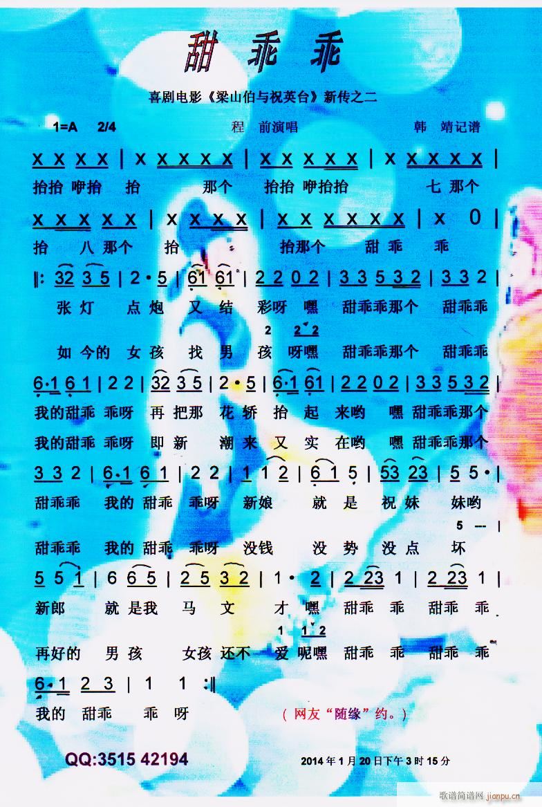[十字及以上]甜乖乖(电影《梁祝》新传之二)】彩谱】 程前