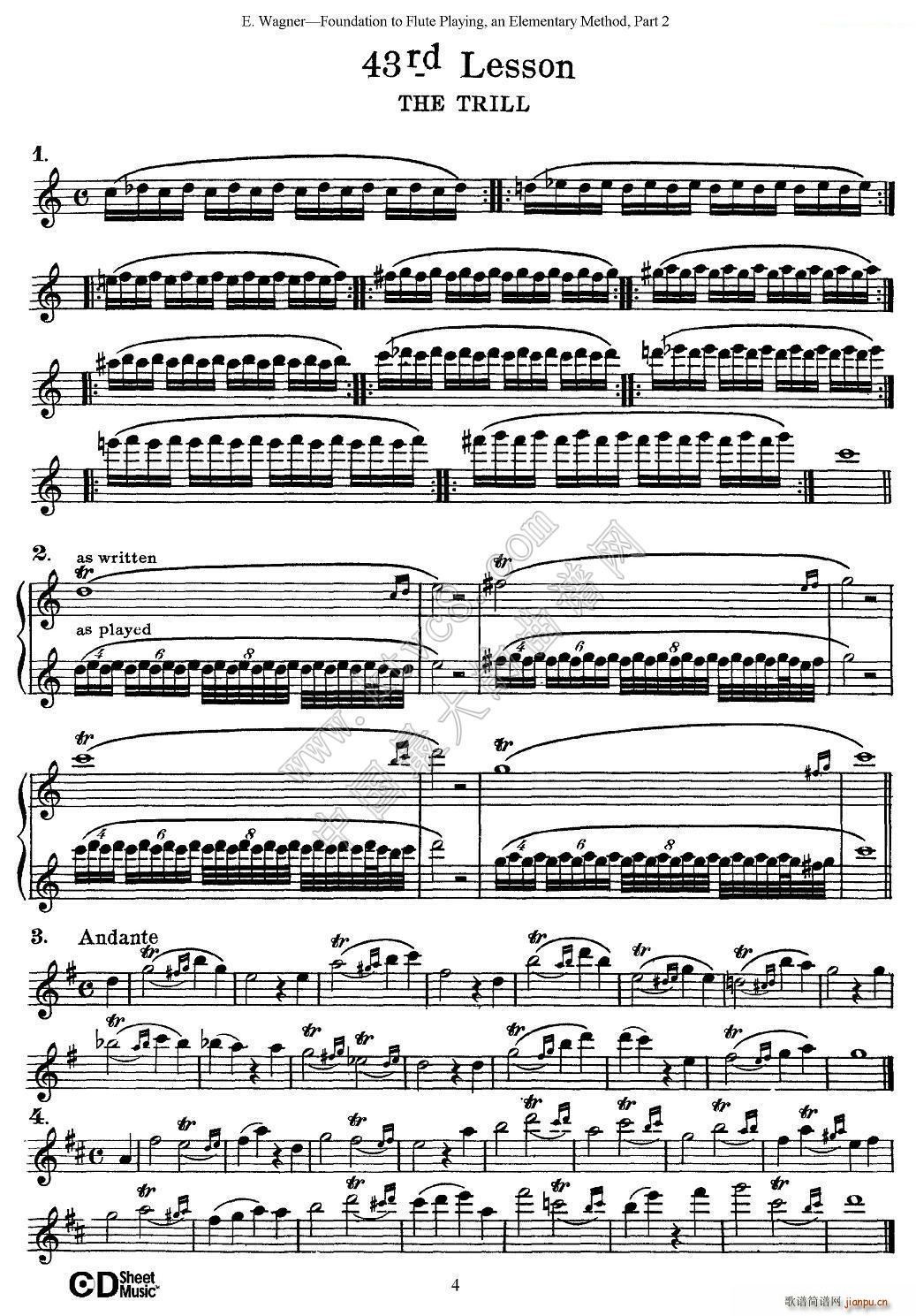 [笛箫谱]长笛演奏基础教程练习(41—46)