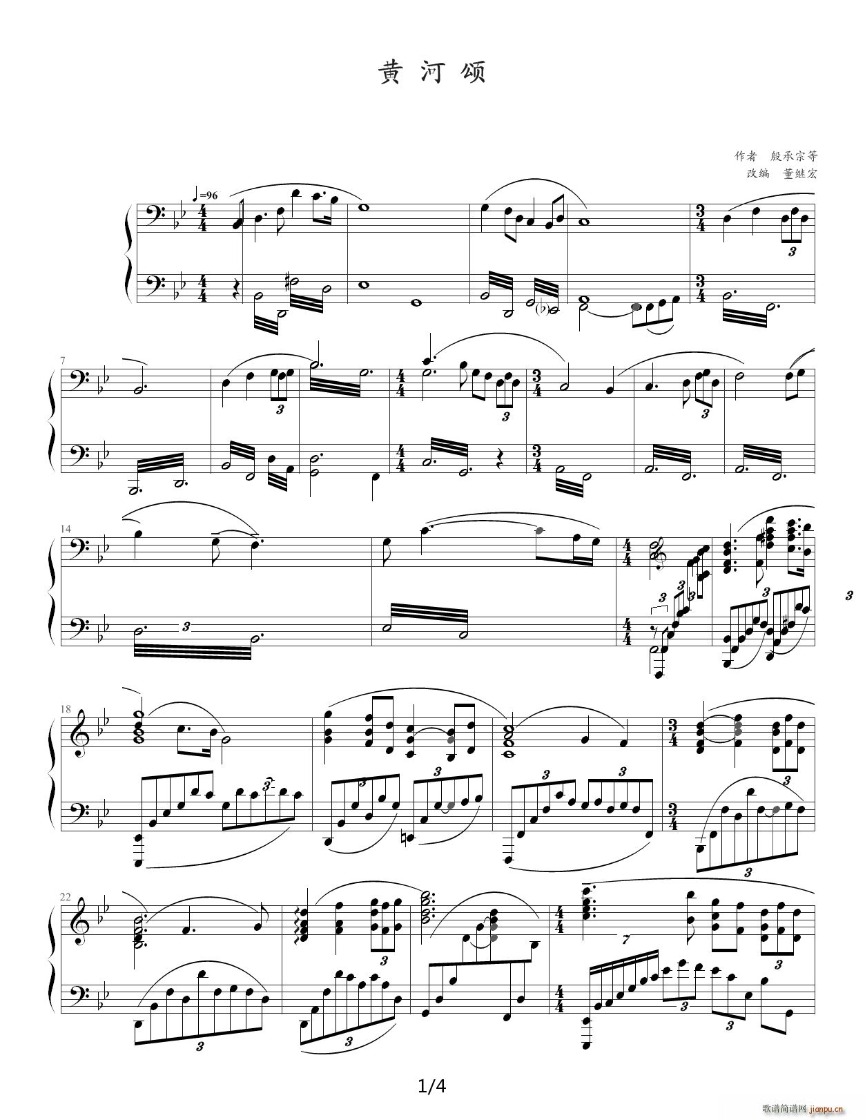 [钢琴谱]《黄河颂》钢琴独奏完整版 降B调