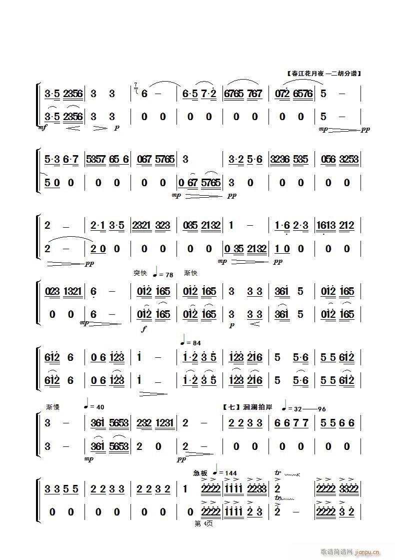 [二胡谱]春江花月夜】民乐合奏二胡分谱】第四页