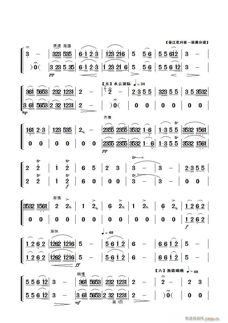 [笛箫谱]春江花月夜】民乐合奏笛萧分谱】第三页