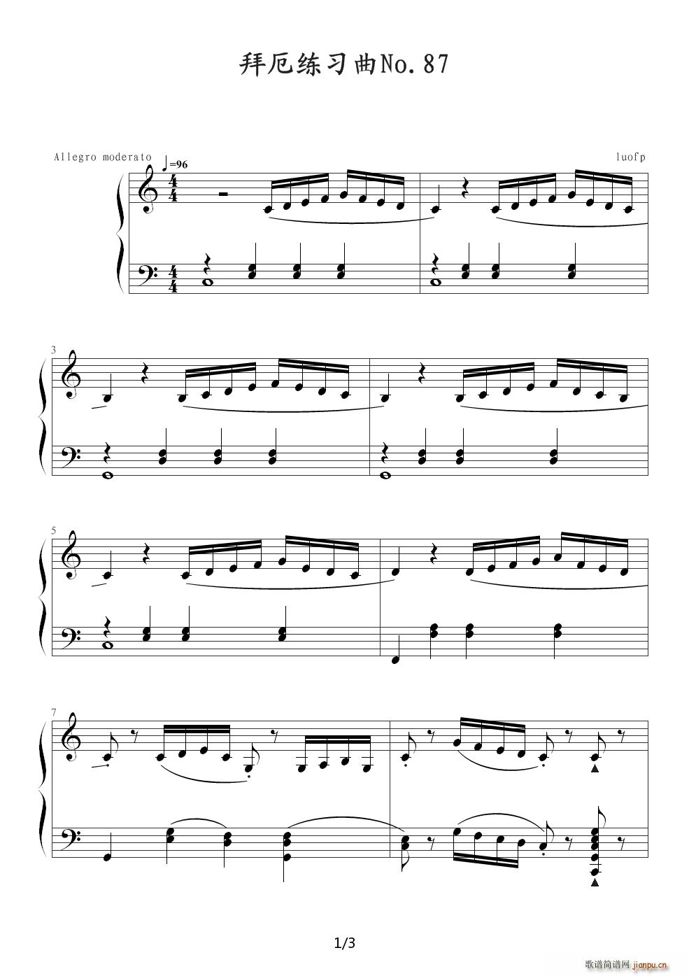 [钢琴谱]拜厄钢琴基本教程No 87伴奏(非幼儿版) C调
