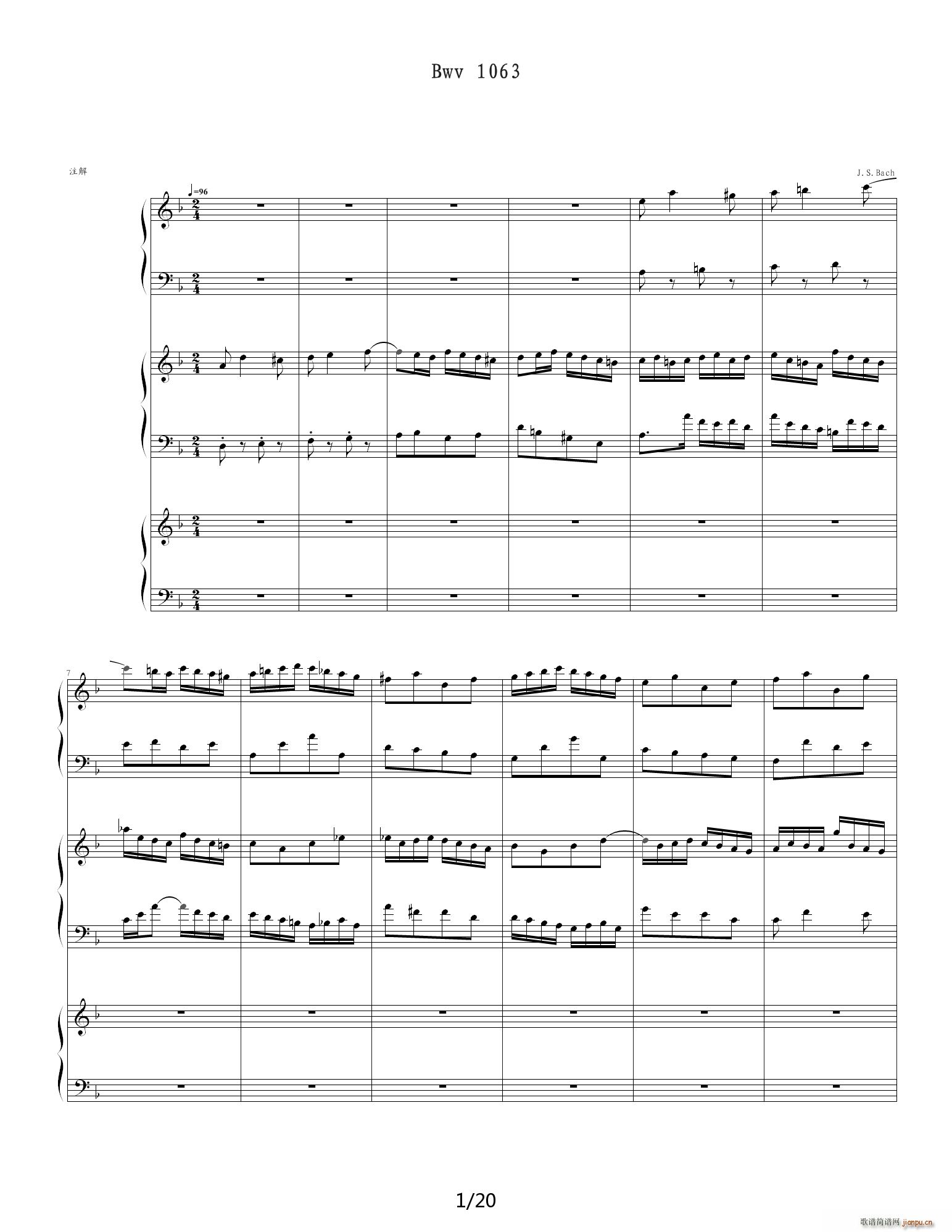 [钢琴谱]巴赫三键盘协奏曲 钢琴 巴赫 Bach