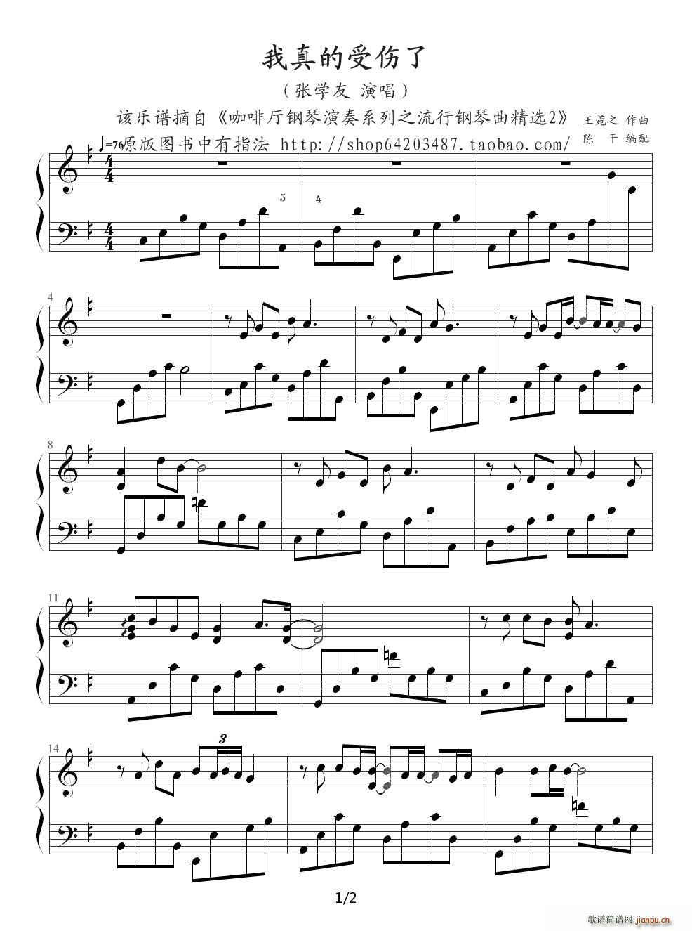 [钢琴谱]我真的受伤了(鸠玖版) G调