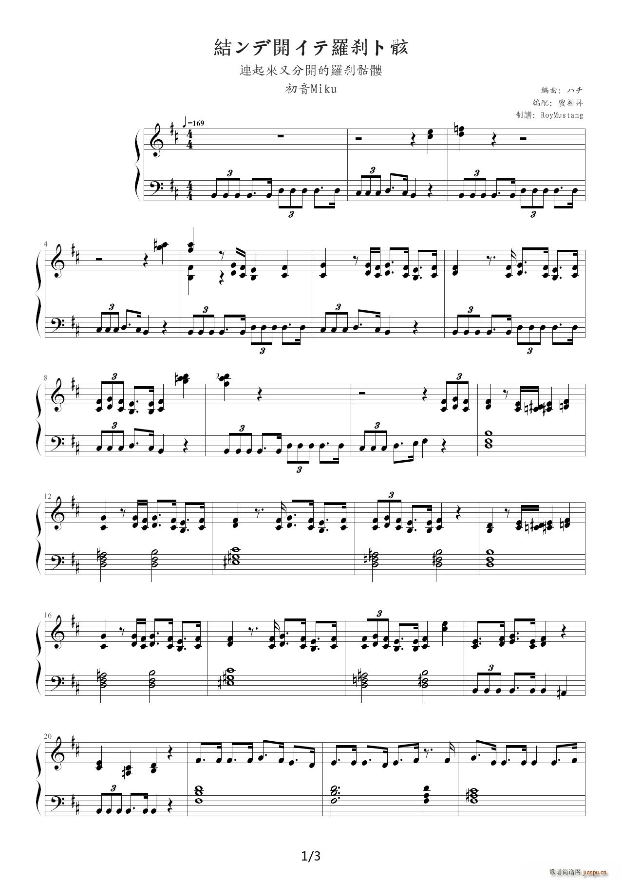 [钢琴谱]初音Miku 結ンデ開イテ羅刹ト骸 初音未来