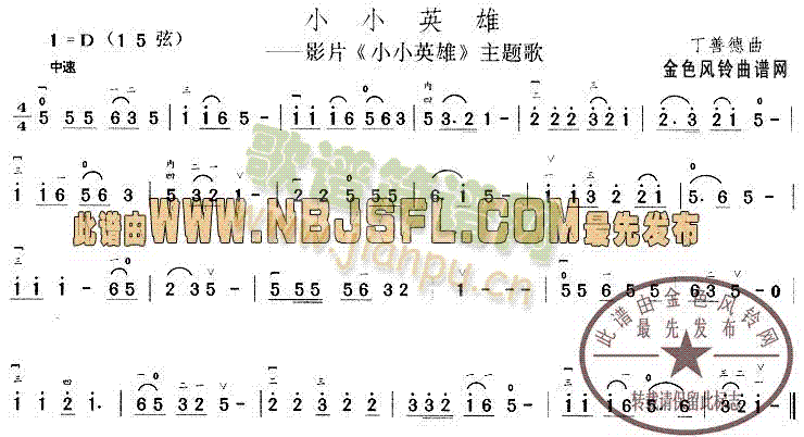 [二胡谱]小小英雄(同名影片主题歌)