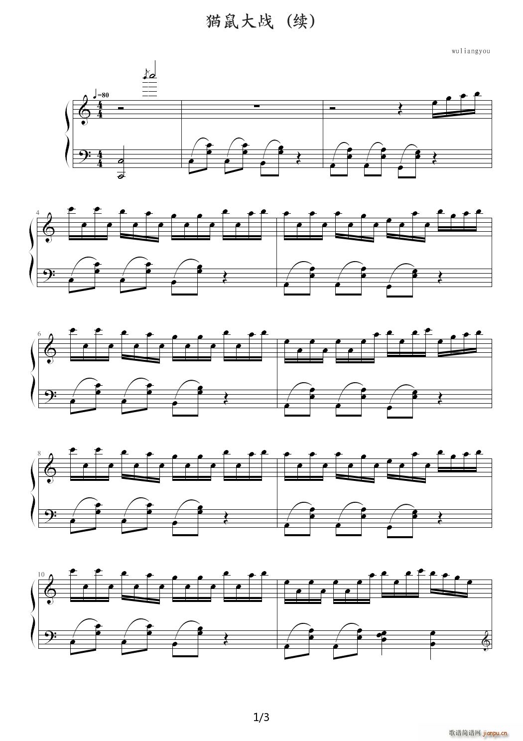 [钢琴谱]猫鼠大战 wuliangyou