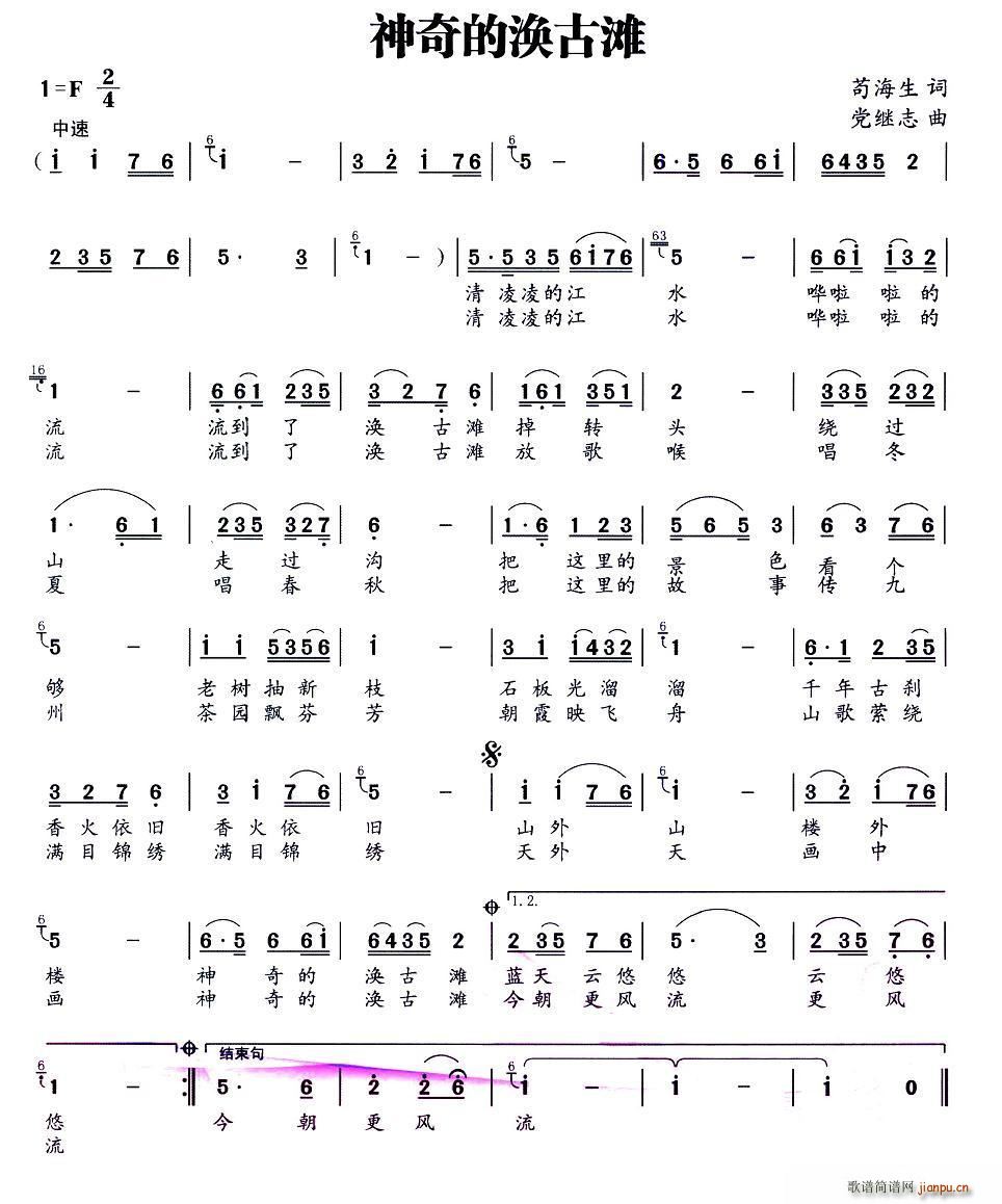 [六字歌谱]神奇的古苗河 作词:刘建作曲:张茂瑞