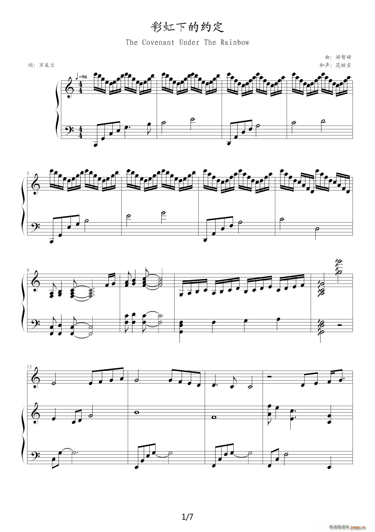 [钢琴谱]彩虹下的约定 C调