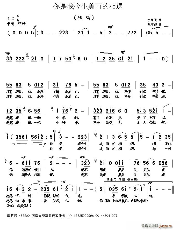 [九字歌谱]相遇是场美丽的误会 张馨戈