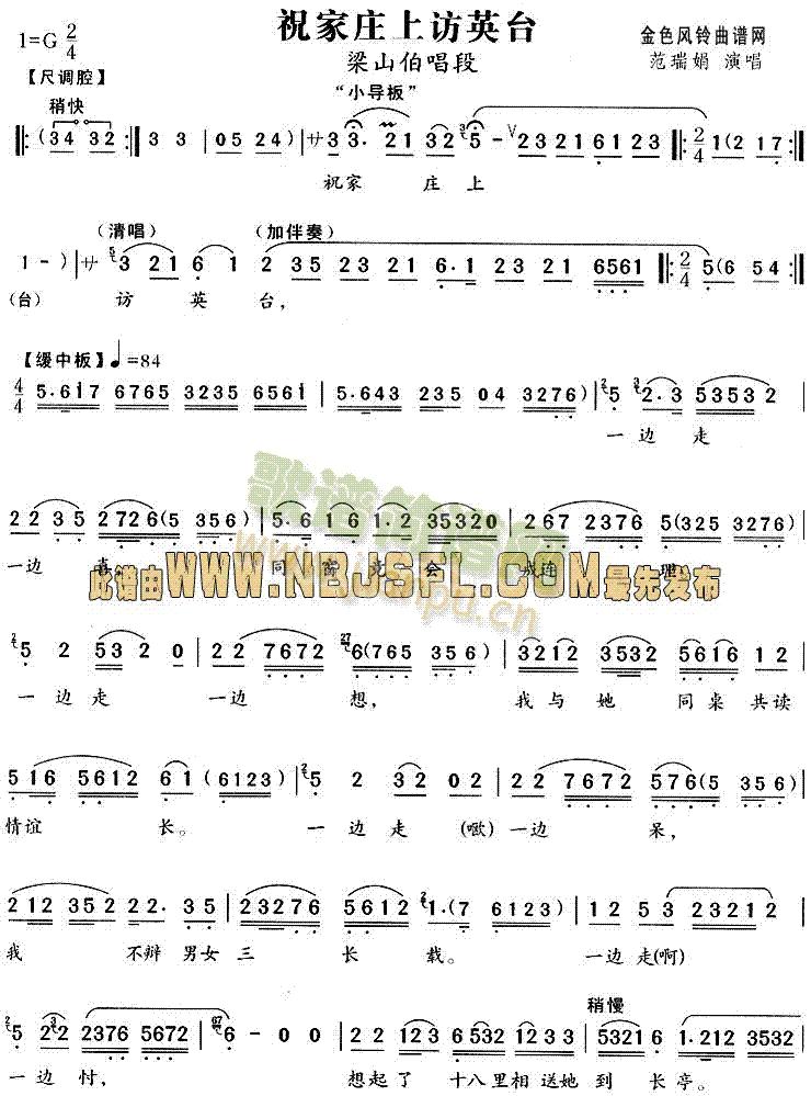 [越剧曲谱]祝家庄上访英台(《梁山伯与祝英台》唱段) 范瑞娟