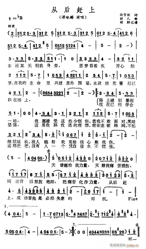 [四字歌谱]从后赶上 谭咏麟