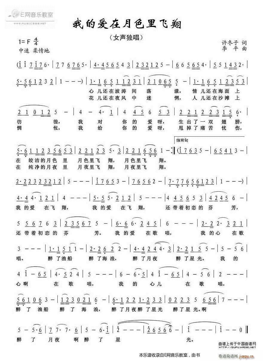 [九字歌谱]我的爱在月色里飞翔