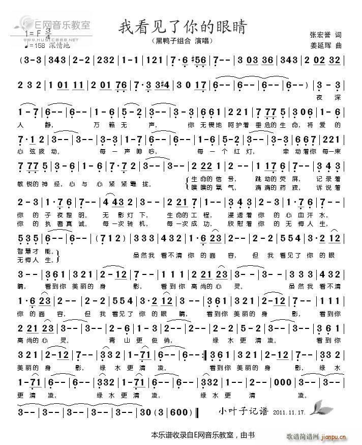 [八字歌谱]我看见了你的眼睛 黑鸭子组合