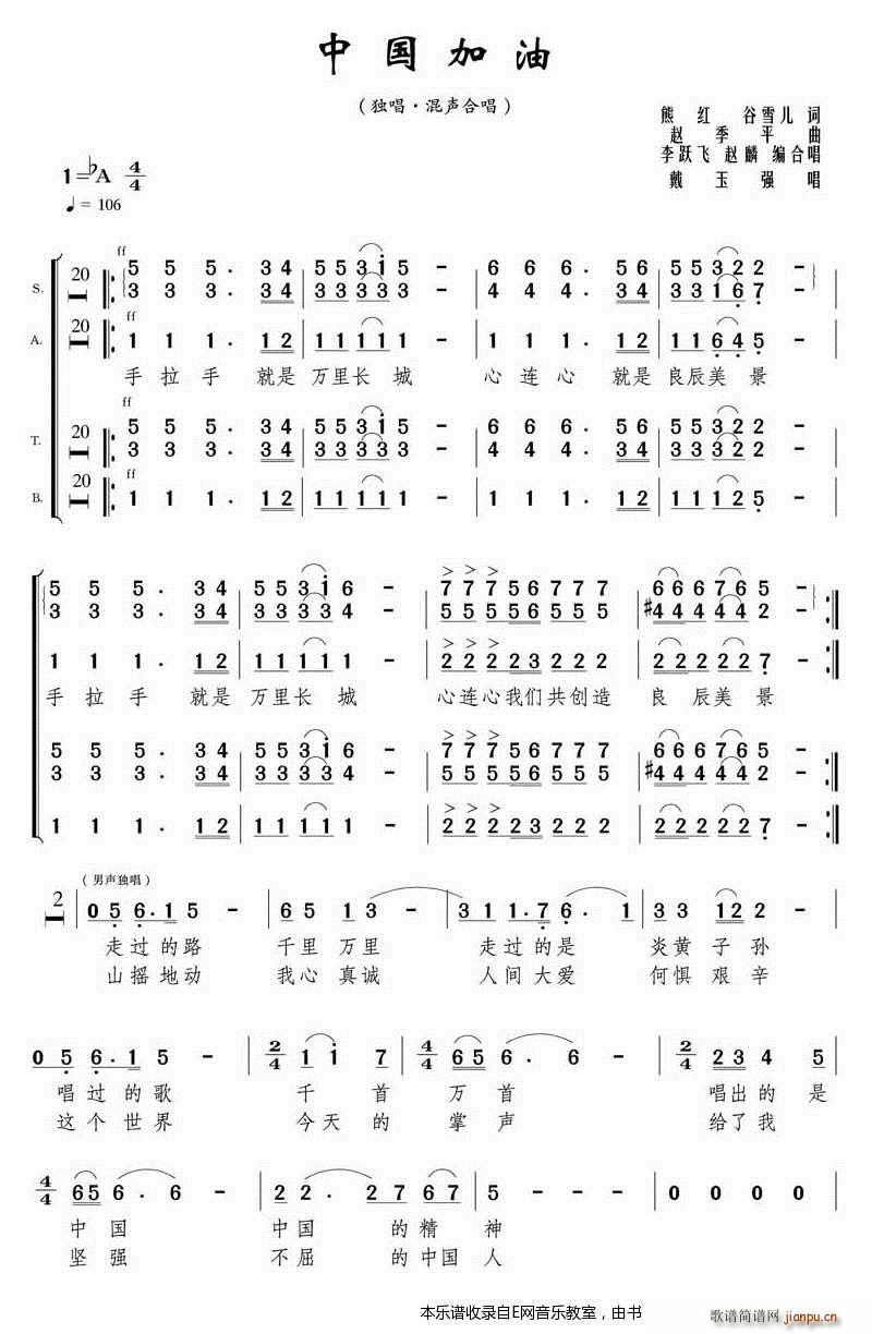 中国加油-戴玉强(四部混声合唱)