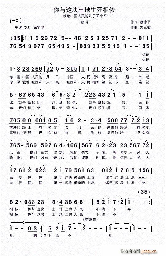 当前位置: 歌谱简谱网 > 十字及以上 > 你与这块土地生死相依(殷德平词 曲)