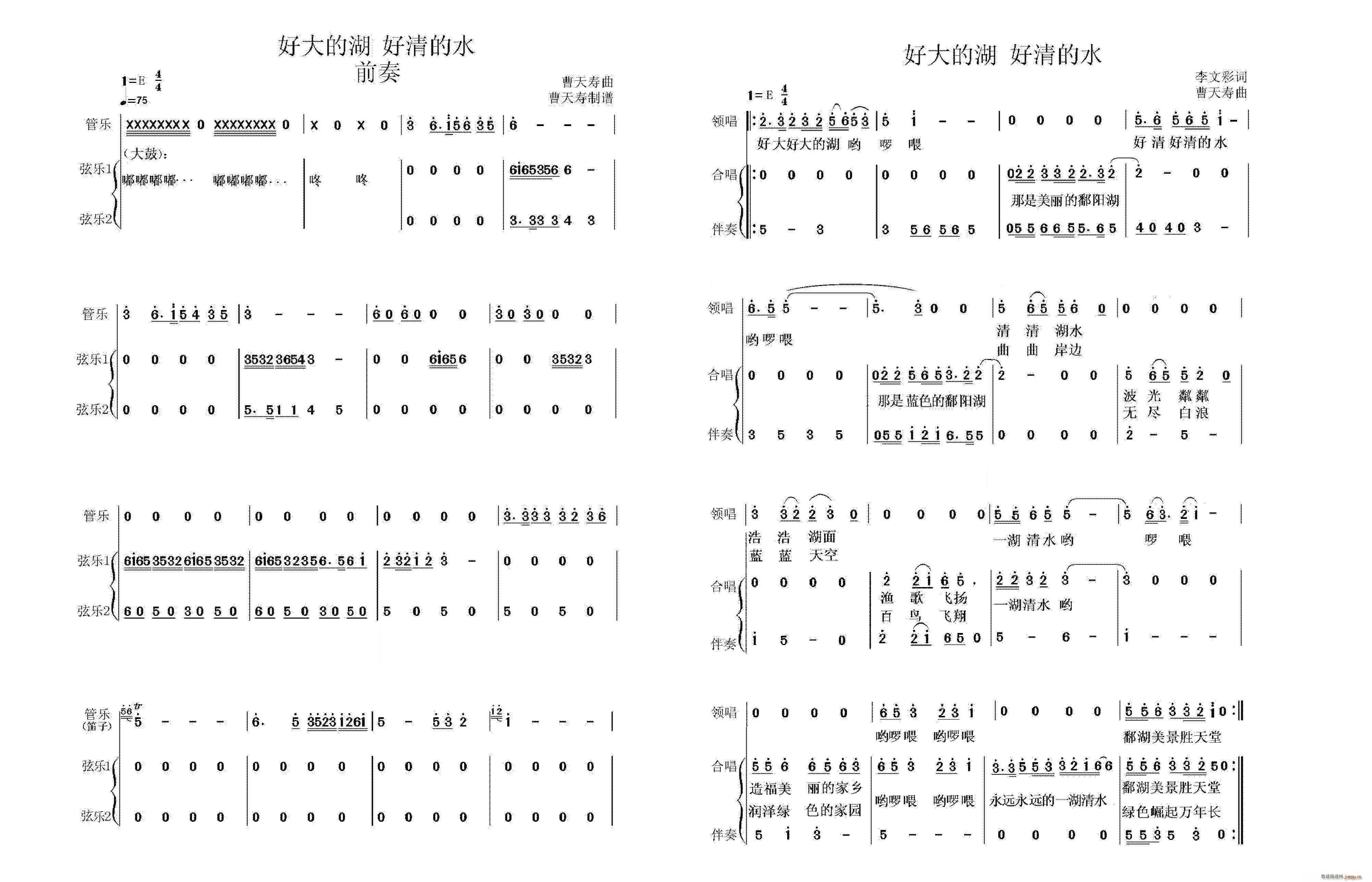[九字歌谱]好大的湖 好清的水《一湖清水》 合唱