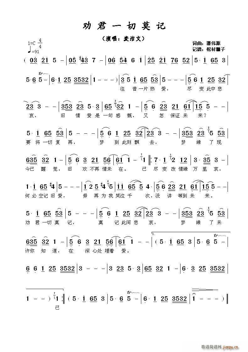 [五字歌谱]劝君把泪收[彩谱] 汪明荃
