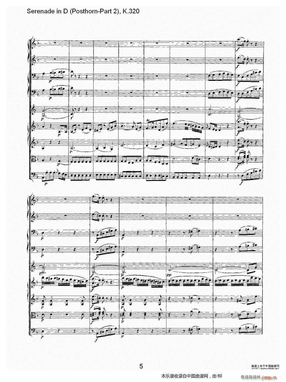 [五字歌谱]D调小夜曲(Posthorn-第一部)),K.32)